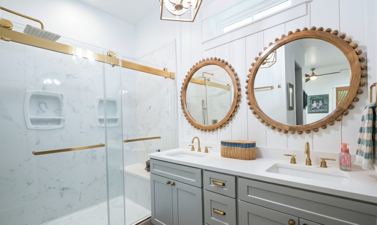 This 2100 square foot, 3 bed, 2.5 Bath modern farmhouse made for an interesting project! Due to flood regulations and challenging soil conditions, we built the house on a ‘floating slab’ foundation system, which is more akin to the reinforced-concrete systems usually found in commercial projects. This, along with a few other building-science-related choices made for a robust, efficient, comfortable home. The finishes are modern-farmhouse style, featuring shiplap accents, custom shelving and storage, antique doors, 10-foot ceilings, and more. We completed construction on this one in 8 months.